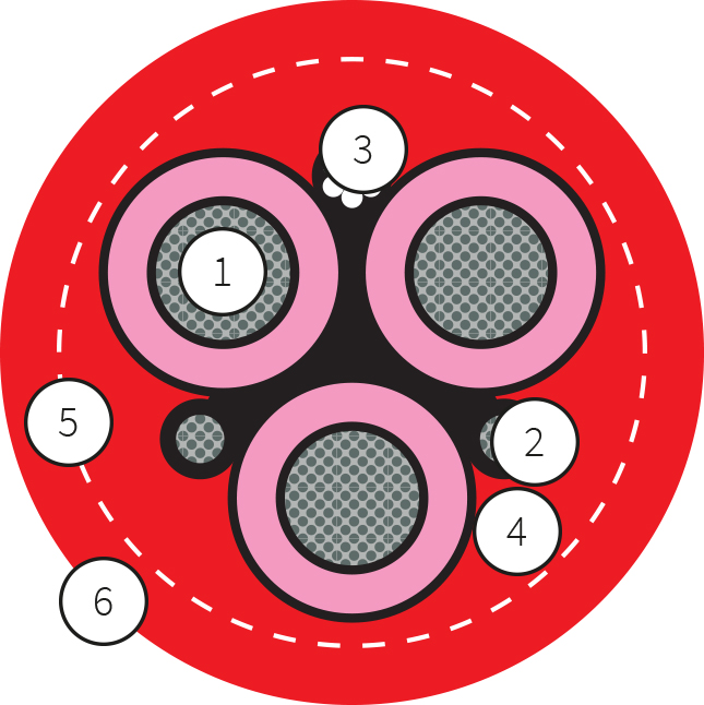 本电缆为集成光纤的柔性收缆电缆,可承受高及极高机械应力,包括扭转应力、多平面偏转与高速收缆场景,也可用于地下及露天采矿的收缆作业。